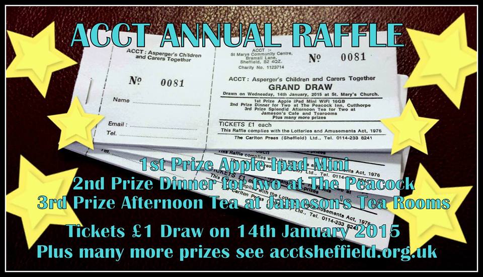 Our raffle will be drawn at our parents’ meeting at St Mary’s Church & Community Centre, Bramall Lane, Sheffield, S2 4QZ on the 14th of January 2015 *. Please respond if you can help in any way by October 20th (our printing deadline) to be considered for listing on the tickets.